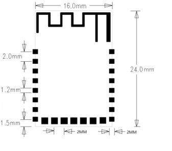 B-Z13模块自带PCB天线,在底板PCB设计时注意把模块天线伸出板边(如左图示意);
